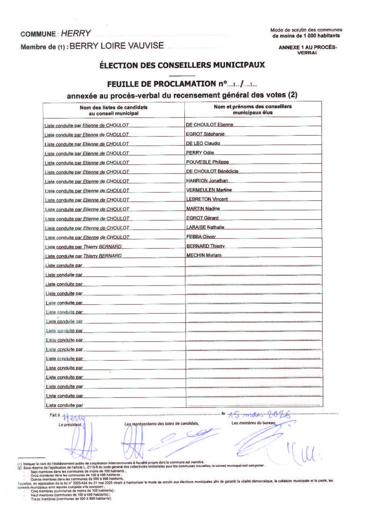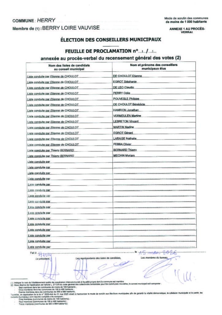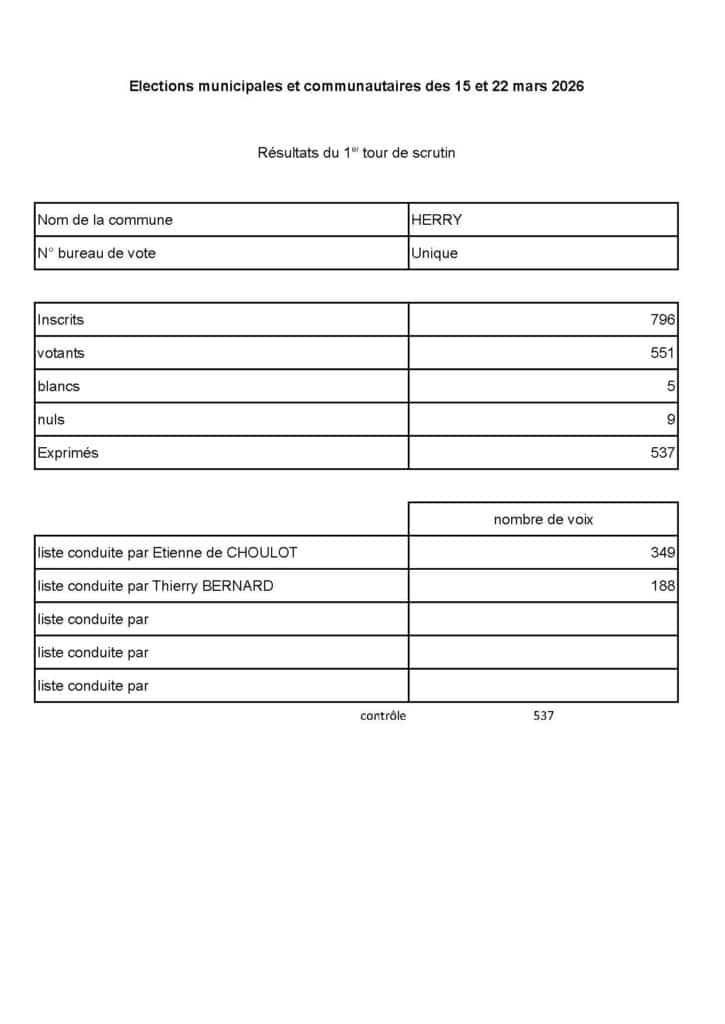 Les électeurs de Herry étaient appelés aux urnes ce dimanche 15 mars pour le premier tour des élections municipales 2026.